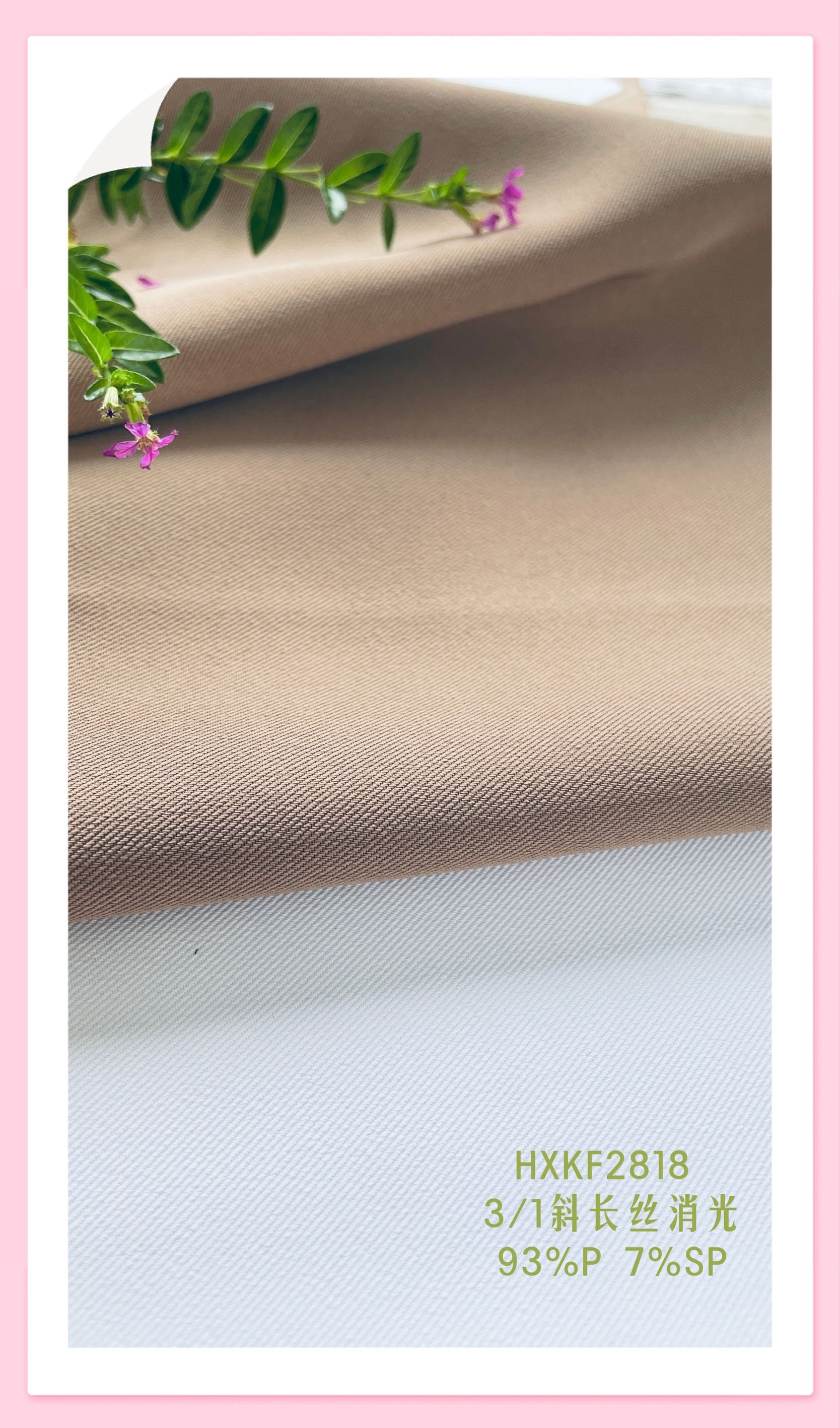 :我司除了主打的醋酸系列、人造丝系列,还有其他的色织系列、仿真丝系列、形态记忆系列、再生面料系列等中高档女装以及男装化纤梭织面料。